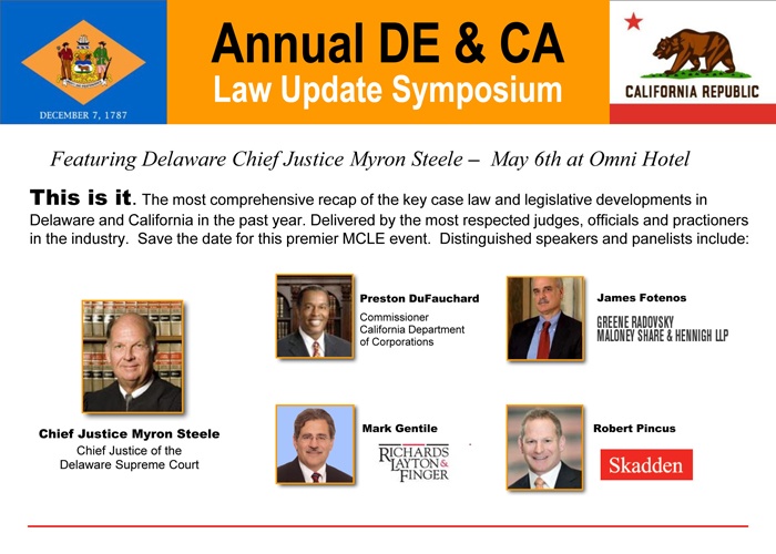 As a reminder, the Los Angeles County Bar Association's annual California/Delaware Law Symposium is next week. Information on registration is available here.